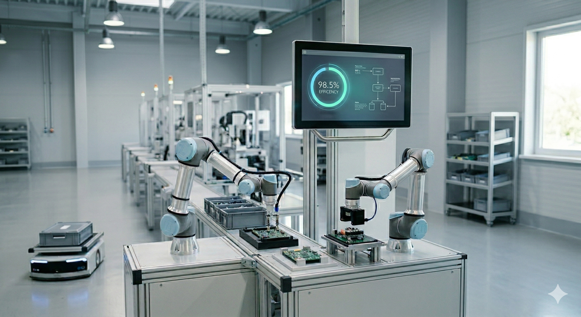 整合人工智慧、機器手臂與精實管理技術優化生產線運作。